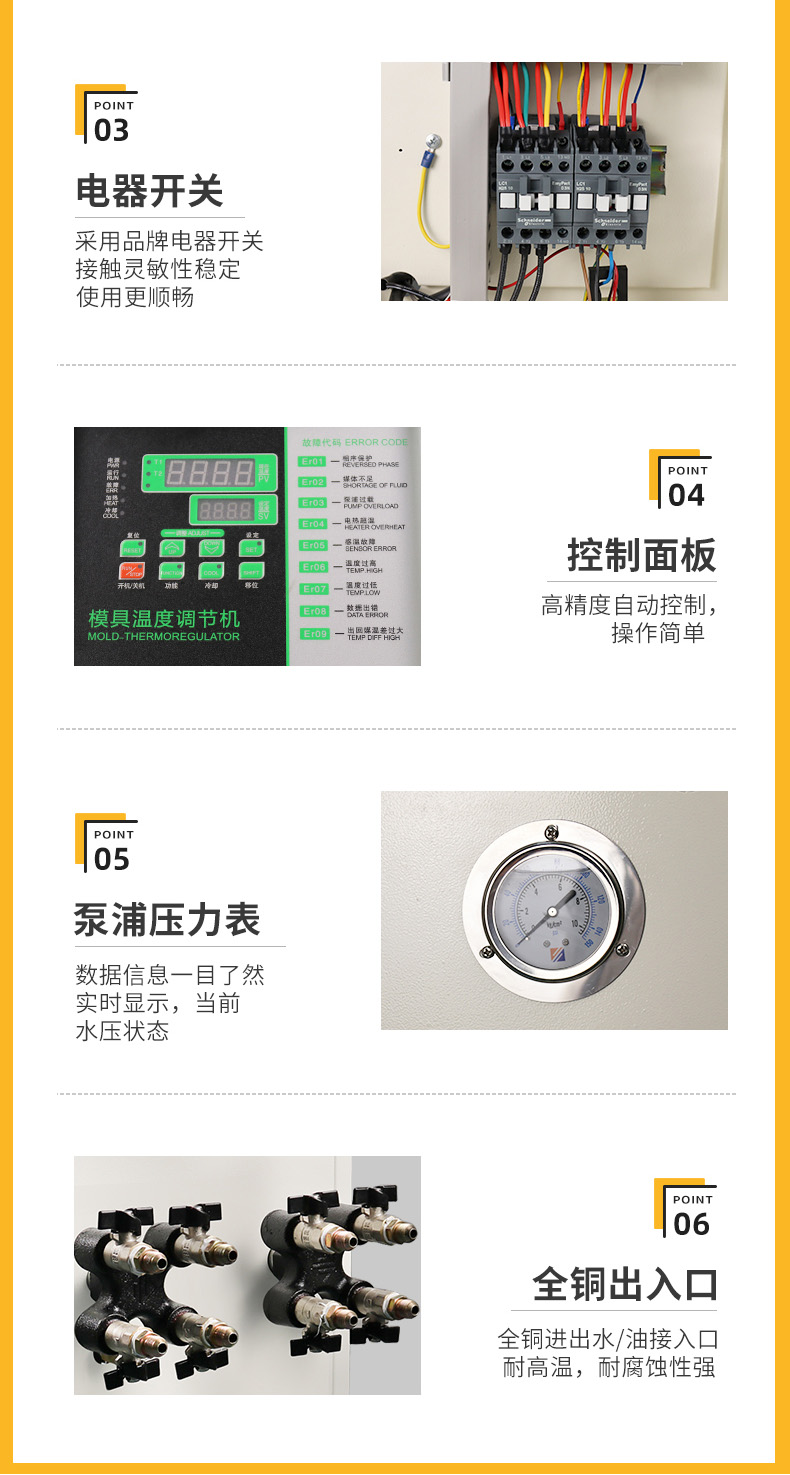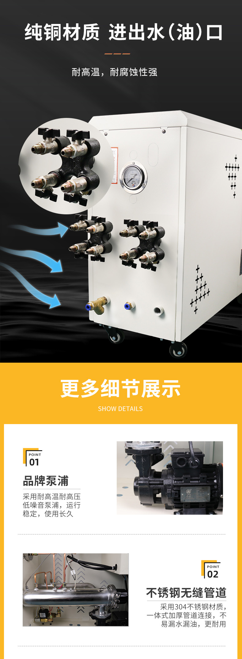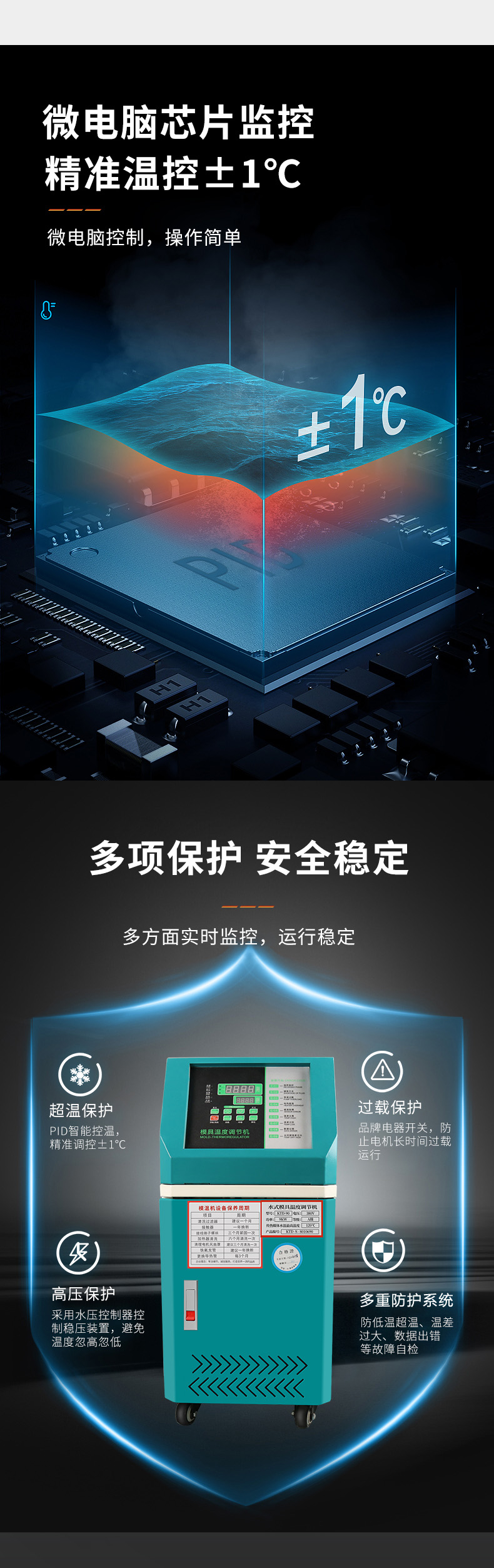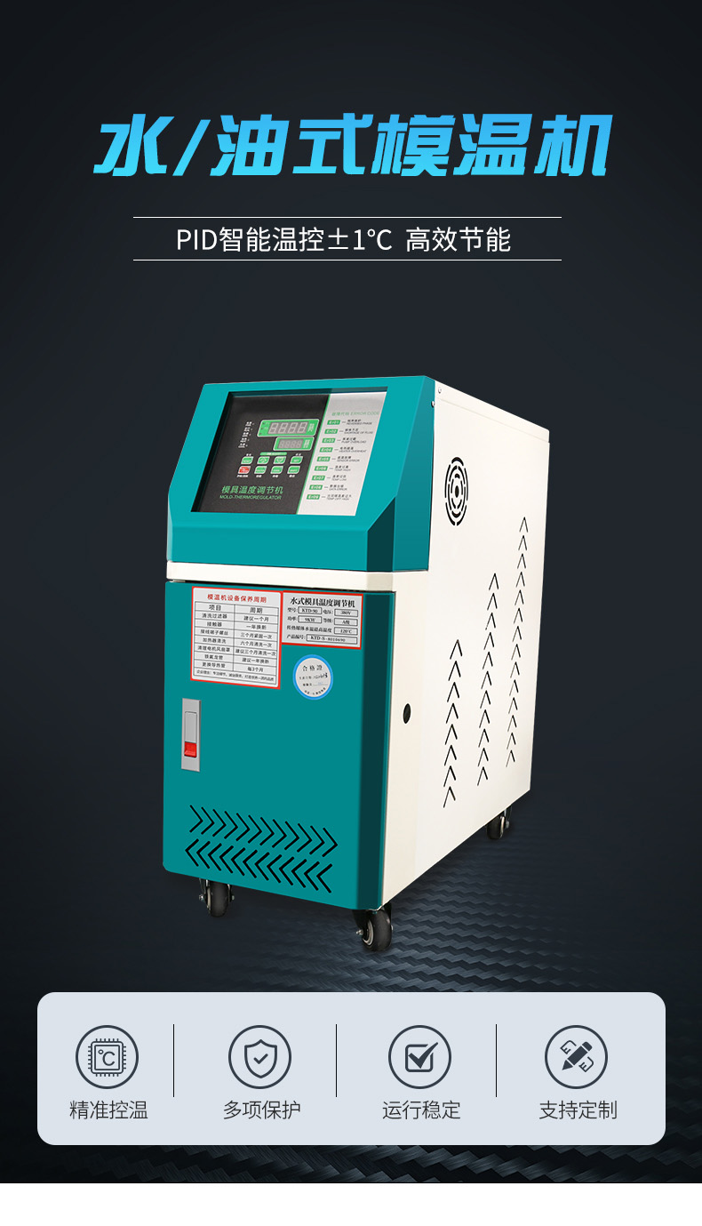 在現(xiàn)代化的工廠中,因應(yīng)市場的競爭,節(jié)省人力,提高品質(zhì),降低成本的經(jīng)營策略是刻不容緩的,模溫機(jī)的使用,可使模具預(yù)熱時(shí)間減少,成品表面質(zhì)量提升及可完全自動(dòng)化生產(chǎn)。提高模具壽命是提高生產(chǎn)力的必要手段。